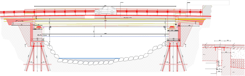 - Die neue Brücke in Latsch soll eine Spannweite von 30 Metern haben und über zwei Fahrstreifen mit je 3,5 Metern Breite sowie einen bis zu zwei Meter breiten Geh- und Radweg verfügen. (Skizze: LPA/Landesabteilung Tiefbau) » [IMG 358 kB]