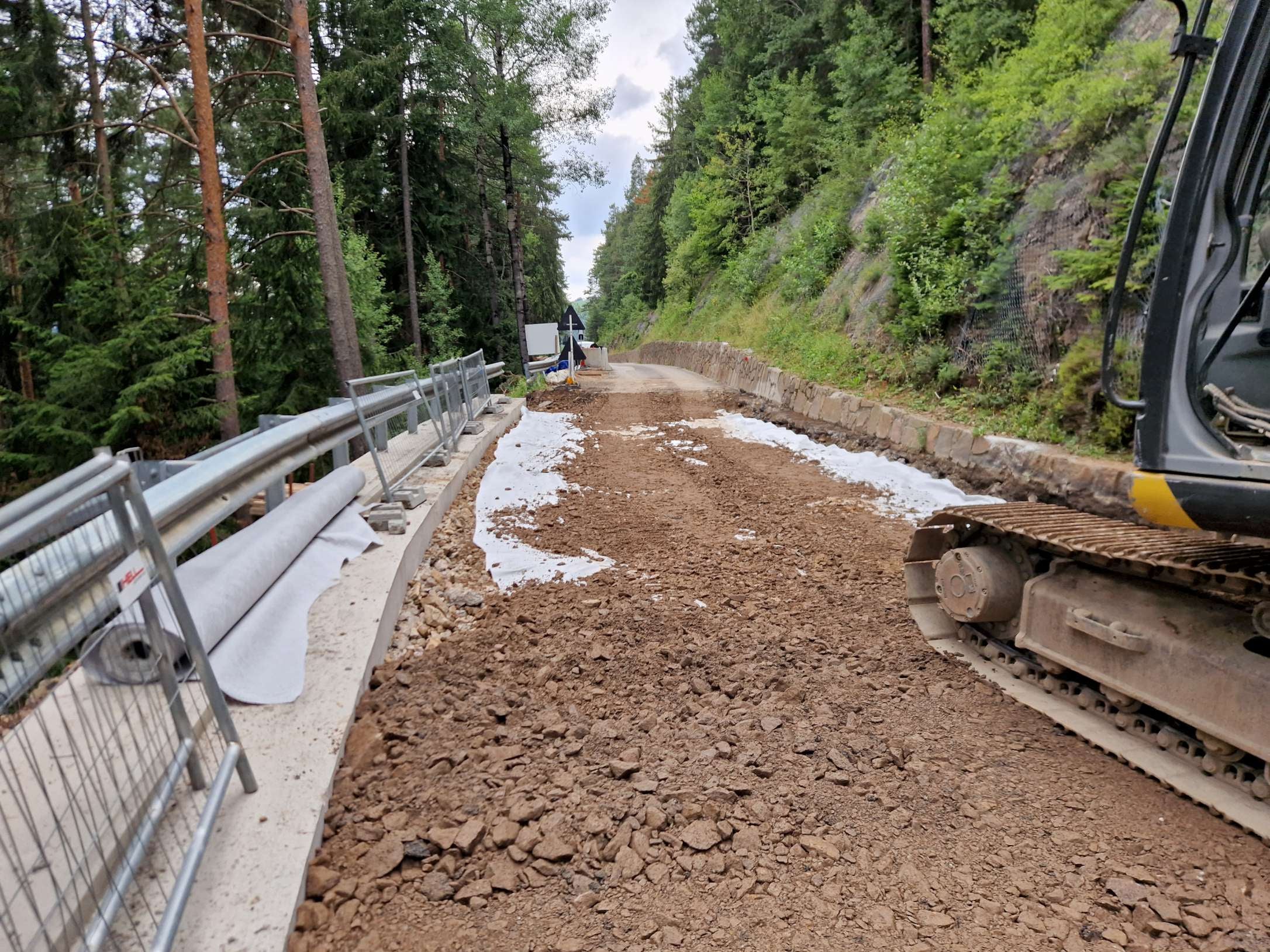 Die entsprechenden Bauarbeiten wurden Anfang Mai 2023 von der Firma Tschager begonnen und sollen bis Ende September 2023 abgeschlossen sein. Im Zuge der Arbeiten stellte sich jedoch heraus, dass die geologischen Verhältnisse für die Verbreiterung der Bergseite anders sind als in der Planungsphase angenommen. "Die Sicherheit der Verkehrsteilnehmerinnen und Verkehrsteilnehmer hat oberste Priorität, daher mussten zusätzliche Hangsicherungsarbeiten durchgeführt werden", erklärt Mobilitätslandesrat Alfreider. Zudem wurde beim Aushub für die Errichtung der talseitigen Mauern festgestellt, dass der Straßenkörper nur aus Erdmaterial besteht und die Straße dadurch ins Rutschen gerät. Aus diesem Grund musste der gesamte Straßenkörper ausgetauscht werden, bevor mit den Pflasterarbeiten begonnen werden konnte.